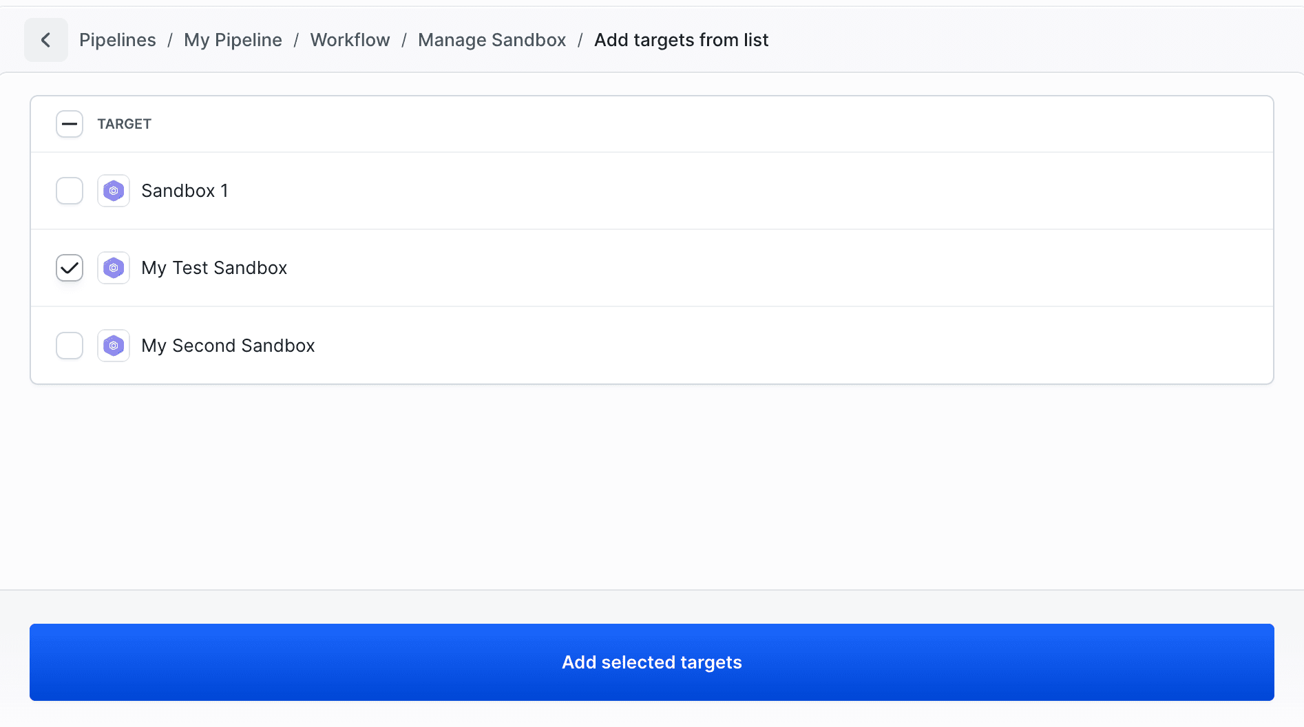 In the TARGET section, select the sandbox on which the operation will be performed: