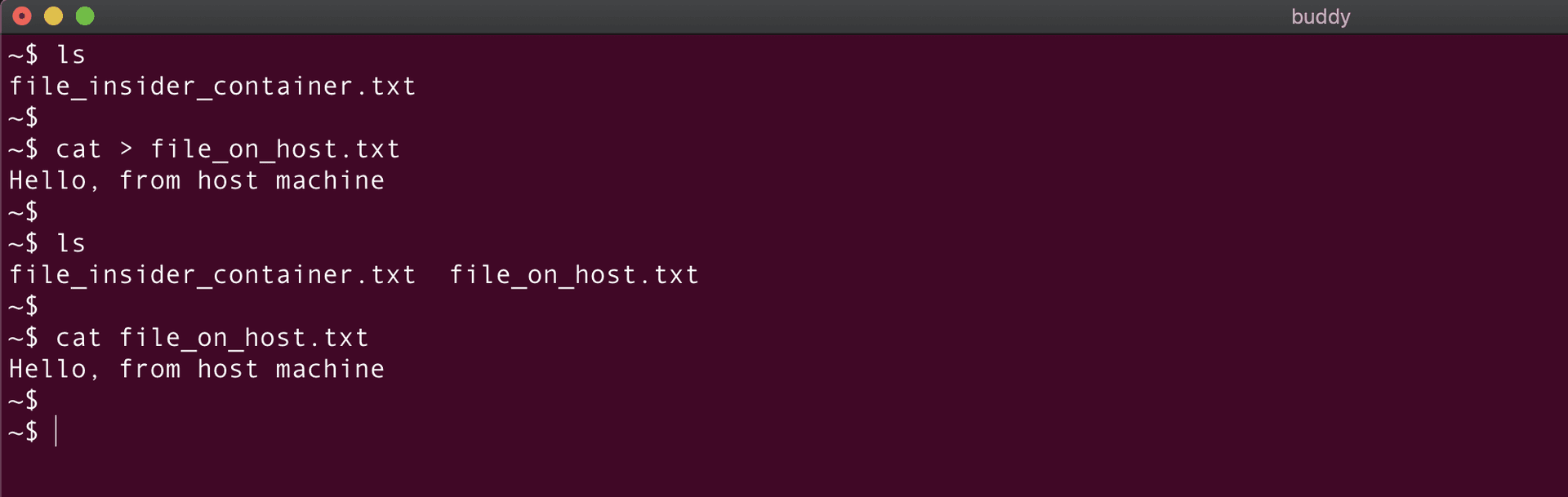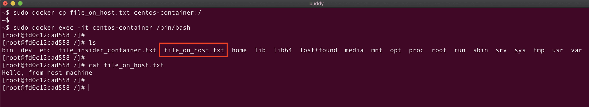 bashdocker run -it --name <container_name> --mount type=bind,source=/path/on/host/,target=/path/on/container first-image$