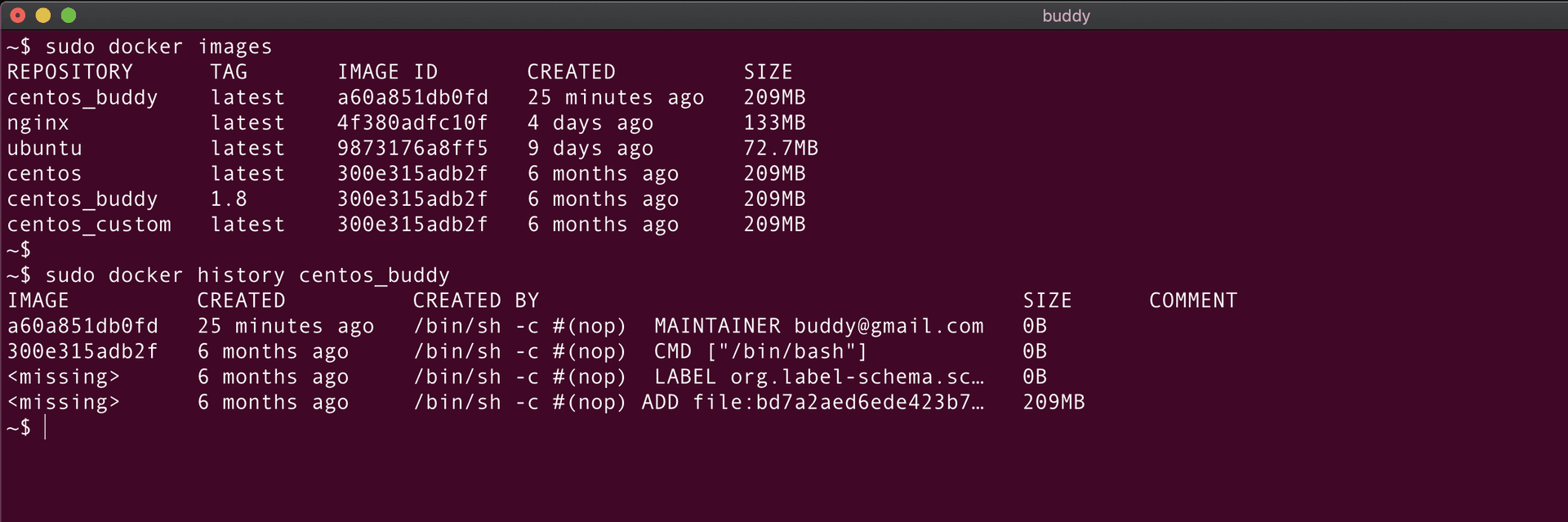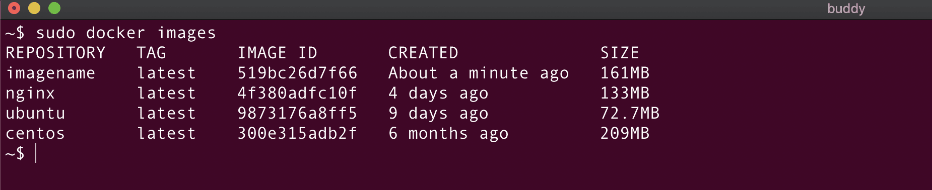 docker images | List local images |