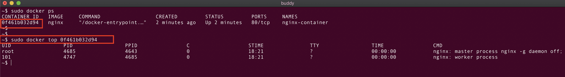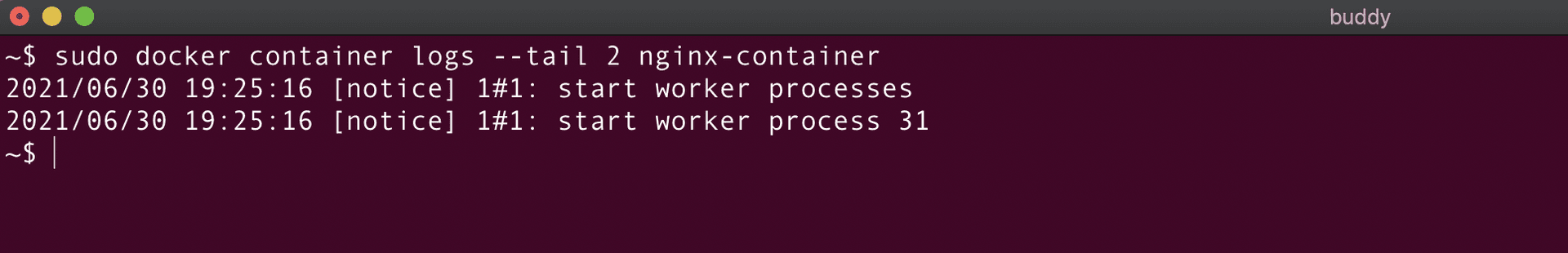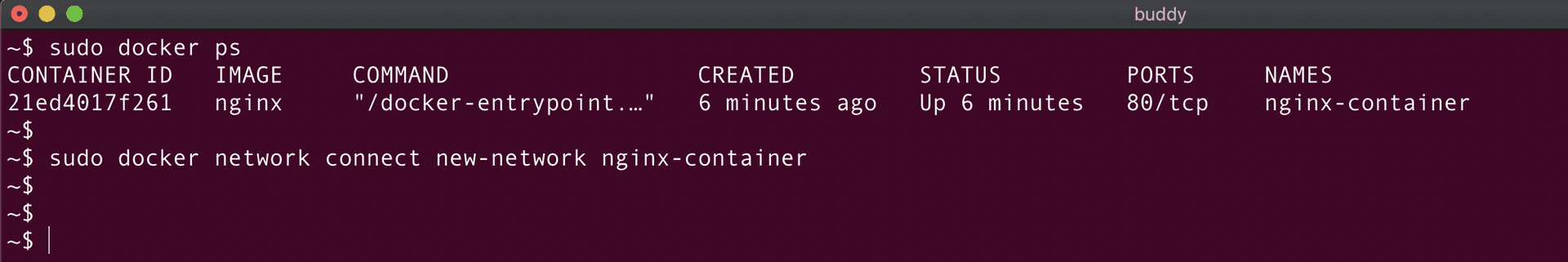 Circling back to our NGINX container, the command would look like this: