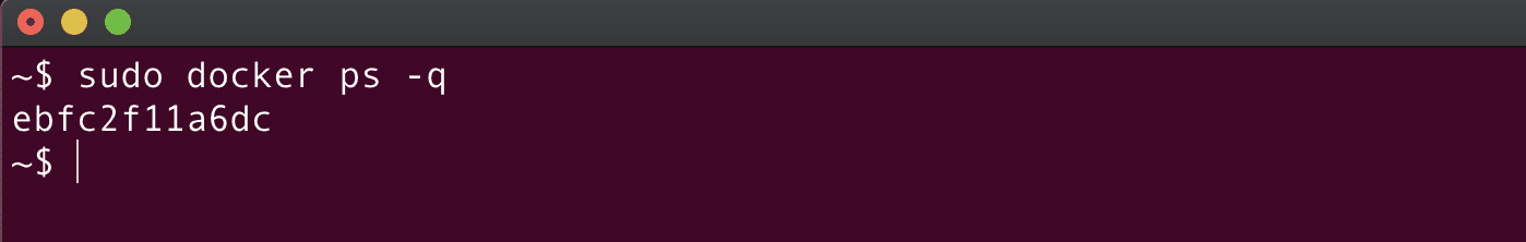 Adding the --quiet parameter modifies the docker ps output and displays only the IDs of running containers: