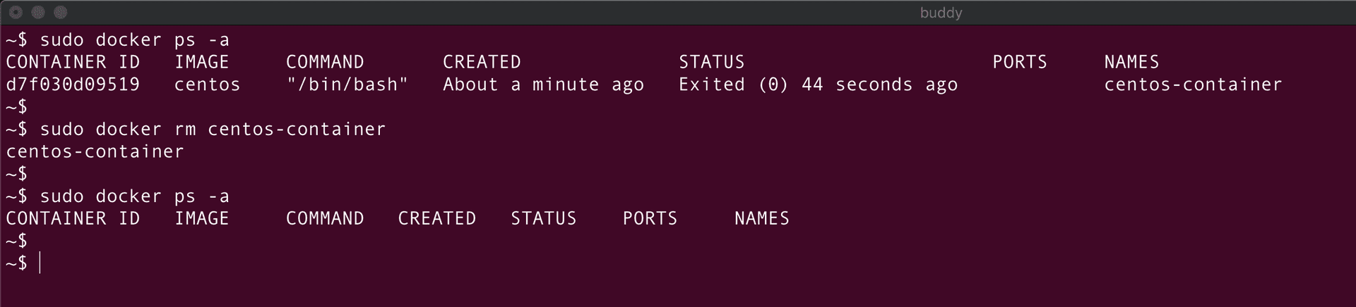 bashdocker ps -all$